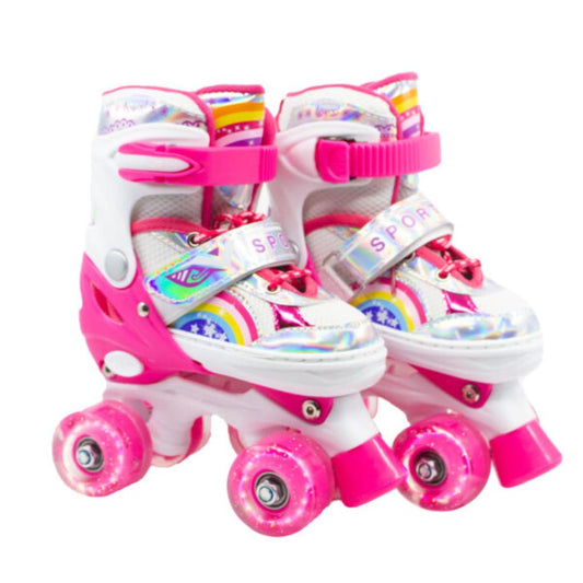 Combo Patines infantiles ajustable con luz y diseño de arcoíris, para niños y niñas